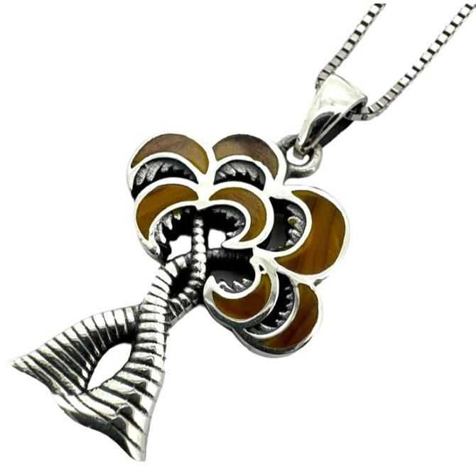 Couples Logo Palm Necklace The Couples Logo Palm Necklace is definitely one of our personal favorites. Showcasing intertwining palms, this sterling silver with Tiger Eye Stone this piece symbolizes a connected bond and hangs from an 18” chain.