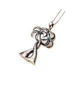 Reminisce on fun-filled days along the coast with alluring blue opal crystals spread out across palm branches and crystals lined down the trunk. This necklace is made from sterling silver and hung on an 18” chain.