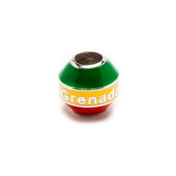 Show your love for the spice island with a flag inspired Grenada charm. Sterling silver embossed with red, green and yellow from the Grenadian national flag.