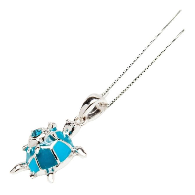 Embodying nurture and loving care, the mother turtle carries her baby on her back. This special piece tells a beautiful story. Gorgeous aquatic opal is laid in the finest sterling silver and hung on an 18” chain.